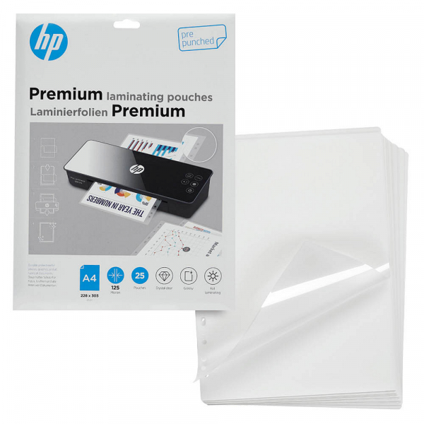 HP Laminierfolien Premium 9122, A4, 229x303mm, 125mic, glänzend, mit Abheftlochung