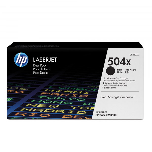 HP original Toner CE250XD 504X • Doppelpack: schwarz • Druckleistung: ca. 2x 10500 Seiten