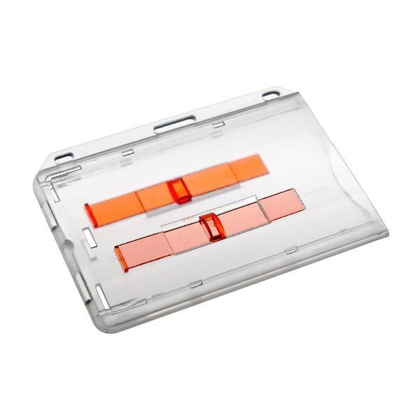 Tragebox ID 38D m.rot.Schieber transp. f.2 Ausweise quer Tragerl - ToolBox, Hartboxen für Betriebsausweise transparent 54x85mm Hartbox für Betriebsausweise transp. 54x85mm Ausweis-Hartbox m.Daumenstanz. transp. 54x85mm Doppelbox f.2 Ausweise transp. 54x85mm