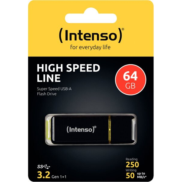 Intenso USB-Stick High Speed Line 3537490, schwarz/gelb, USB 3.2, 64 GB