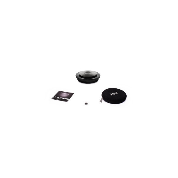 Mobiles Design. Für Konferenzgespräche mit bis zu 6 Personen und Musikwiedergabe. Omnidirektionales Mikrofon mit 360°-Abdeckung und HD-Voice/Breitbandaudio, Peakleistung Lautsprecher: 10 W. Personalisierbar mit einem digitalen Assistenten über den One-Touch-Smart-Button. Gerätekopplungen: bis zu 8 bei Einzelnutzung, bis zu 900 bei gemeinsamer Nutzung. Plug & Play, kompatibel mit den führenden UC-Plattformen, zertifiziert für Avaya, Cisco und Skype for Business. Konnektivität: Bluetooth® 4.2, Bluetooth® Low Energy (BTLE) - Reichweite: bis zu 30 m, USB - USB-Kabellänge: 90 cm. Akkulaufzeit: 15 h. Ladeschnittstelle: micro-USB, Ladekapazität: 5 V / 500 mA, Ladedauer: 3 h. Energiesparmodus: nach 15 min, Standby: 480 Tage. Gewicht Gerät: 298 g. Lieferumfang: Gerät, Jabra® USB-Adapter Link 370, USB-Kabel, Reiseetui, Kurzanleitung, Garantieerklärung.