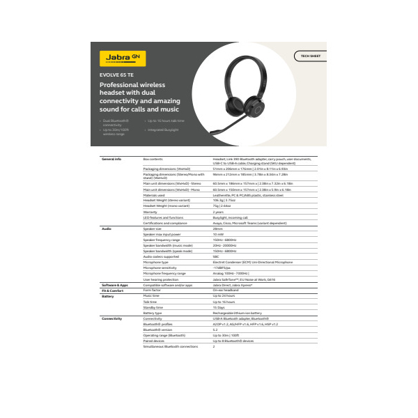 zum Datenblatt| Jabra Jabra in Kopfhörer anzeigen | |