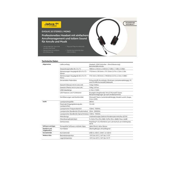 Jetzt Jabra Headset Evolve 20SE Schwarz günstig kaufen.