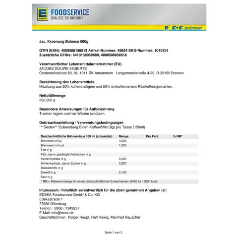 Jacobs Kaffee Krönung Signature 4091341, 500g, gemahlen im Vakuumbeutel | Jacobs Kaffee Krönung Signature Mild 4091342, 500g, gemahlen im Vakuumbeutel | Gepa Kaffee Milde Mischung 8950925, 500g, gemahlen im Vakuumbeutel | Gepa Kaffee Caffe Crema 8950908, 500g, gemahlen im Vakuumbeutel | Eduscho Kaffee Professional Forte 477424, 500g, gemahlen im Vakuumbeutel | Eduscho Kaffee Professional Mild 477426, 500g, gemahlen im Vakuumbeutel | Jacobs Kaffee Tesoro 4057559, 1kg, gemahlen im Vakuumbeutel | Jacobs Kaffee Klassische Auslese 67607, 500g, gemahlen im Vakuumbeutel | Melitta Kaffee Gastro Würzig 602, 500g, gemahlen im Vakuumbeutel | Melitta Kaffee Gastro Mild 606, 500g, gemahlen im Vakuumbeutel |