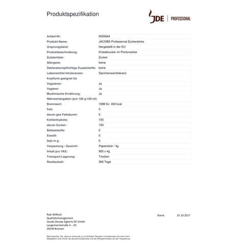 Genießen Sie die hohe Qualität und den hervorragenden Geschmack der Jacobs Zucker-Sticks. Die Adresse für Anfragen und mehr Informationen finden Sie hier: Im Kleifeld 28, 31275 Lehrte, Deutschland. Kontaktieren Sie uns jederzeit per E-Mail unter info@pbsdeutschland.de oder besuchen Sie unsere Website www.pbsdeutschland.de.