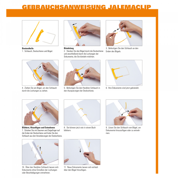 Der Jalema Clipex verfügt über einen extralangen Schlauch und Bügel, sodass der gesamte Inhalt eines vollen Ordners problemlos darauf passt. Inklusive sind farbige Etiketten mit Perforationslöchern, die beidseitig beschriftbar sind. Damit haben Sie alles im Blick und können Ihre Archive optimal organisieren.