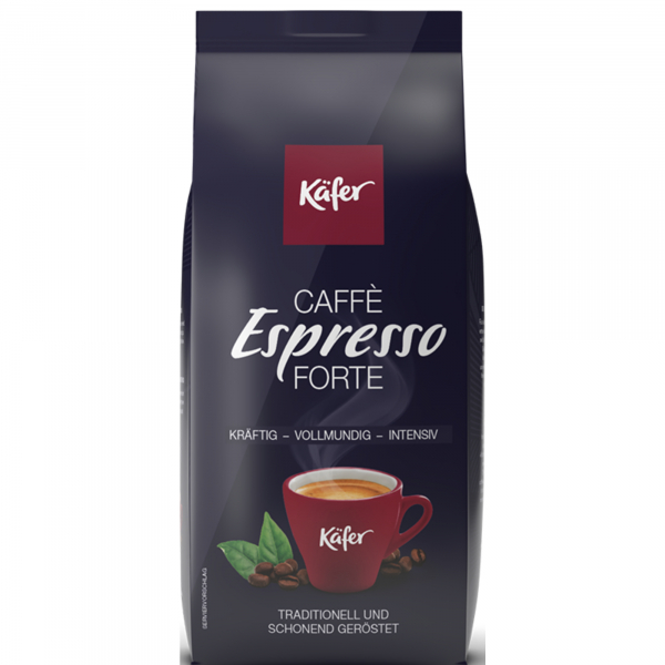 Probieren Sie die ESPRESSO forte Kaffeebohnen von Käfer und erleben Sie den intensiven Geschmack eines hochwertigen Espressos. Kaufen Sie jetzt und genießen Sie Ihren perfekten Espresso zuhause.