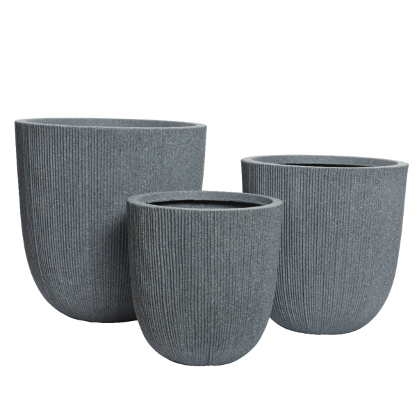 Mit diesem stilvollen Pflanzgefäß wird sofort eine ruhige, entspannte Atmosphäre geschaffen, die dem Balkon oder der Terrasse einen natürlichen Look verleiht. Die gerippte Struktur in warmen Grautönen sorgt für eine ansprechende Optik. Dank seines eleganten Designs fügt sich dieser funktionelle Außen Dekorationsartikel mühelos in verschiedene Stilrichtungen ein, von Modern bis rustikal. Ausgestattet mit einem Ablaufloch und einem Trafo für optimale Pflanzenpflege, ist das Pflanzgefäß zudem leicht und daher einfach zu bewegen. Es ist pflegeleicht und kann mit einem feuchten Tuch einfach gereinigt werden. Genießen Sie die Vorteile der gerippten Struktur!