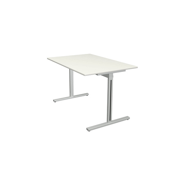 Schreibtisch Form 1, 75cm (H), 120x80cm (BxT), rechteckig, weiß / silber