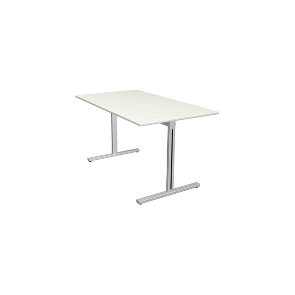 Kerkmann Schreibtisch Form 1, 75cm (H), 140x80cm (BxT), rechteckig, weiß / silber