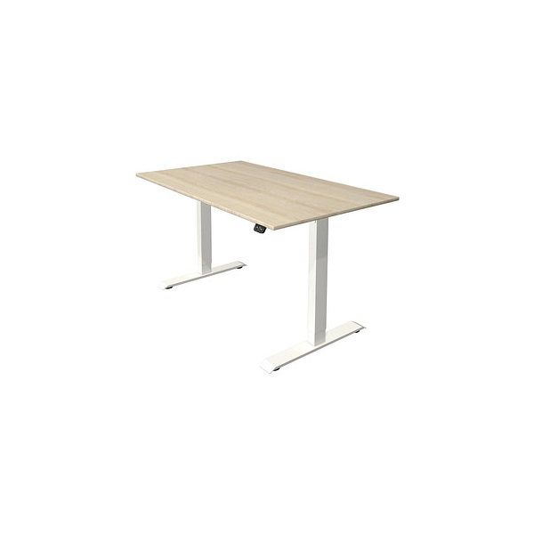 elektrisch höhenverstellbarer Sitz-Steh-Schreibtisch Kerkmann Move 1 10358250 • für ergonomisches Arbeiten • Höhe: 74-123cm • Platte: ahorn, 140x80cm (BxT), rechteckig, Spanplatte, 19mm • Gestell: weiß, T-Fuß-Gestell, Stahl • ohne Rollen • Tragfähigkeit: bis 100kg • Gewicht: 39,5kg • Anlieferung: zerlegt