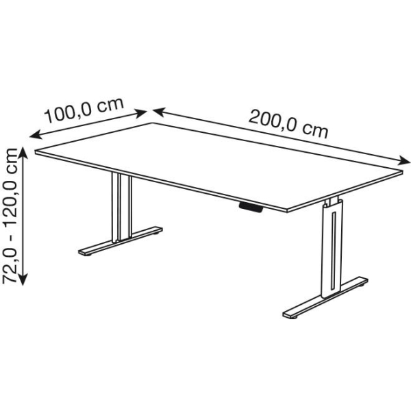 Der Schreibtisch verfügt über eine beeindruckende Höhenverstellung von 72 bis 120 cm, die Ihnen die Freiheit gibt, im Sitzen oder Stehen zu arbeiten. Mit einer großzügigen Tischplatte von 200 x 100 cm haben Sie ausreichend Platz für Ihren Laptop, Dokumente und weitere Arbeitsutensilien. Der rechteckige Tisch ist in einem eleganten Weiß gehalten, während das Gestell in anthrazitfarbenem Stahl für Stabilität und Langlebigkeit sorgt.