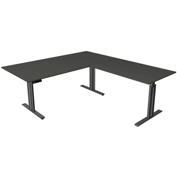 Kerkmann Sitz-Steh-Schreibtisch Move 3 elegant, elektrisch höhenverstellbar, 72-120cm (H), 200x220cm (BxT), L-Form, anthrazit / anthrazit