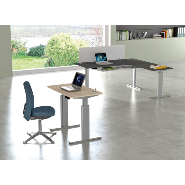 Sitz-Steh-Schreibtisch Move 3 tube, elektrisch höhenverstellbar, 72-120cm (H), 180x80cm (BxT), L-Form, anthrazit / silber