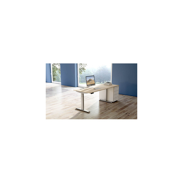Kerkmann Sitz-Steh-Schreibtisch Move 4, elektrisch höhenverstellbar, 64-129cm (H), 160x80cm (BxT), rechteckig, ahorn / silber