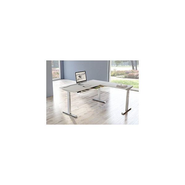 Kerkmann Sitz-Steh-Schreibtisch Move 4, elektrisch höhenverstellbar, 64-129cm (H), 180x180cm (BxT), rechteckig, lichtgrau / silber