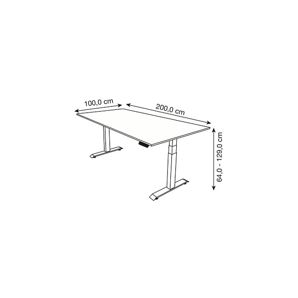 Der **Sitz-Steh-Schreibtisch** ist nicht nur funktional, sondern auch ästhetisch ansprechend. Mit einer großzügigen Fläche von 200x100 cm bietet er ausreichend Platz für Ihren Computer und andere Arbeitsmaterialien.