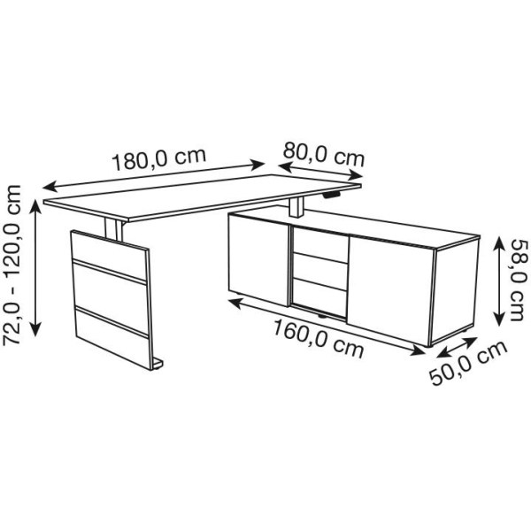 | mit Sideboard 160,0 x 50,0 x 50,0 (BxTxH), rechts montierbar. | |