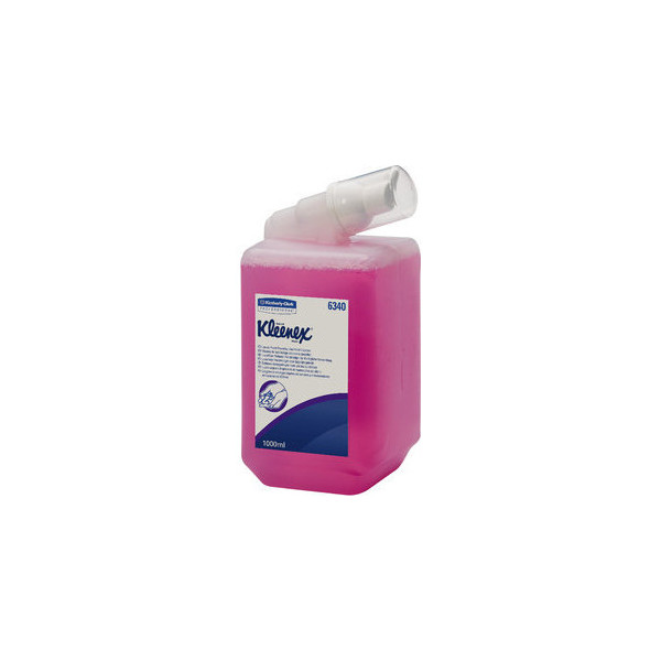 Bei der Füllung handelt es sich um eine flüssige Waschlotion mit extra hochwertiger Rezeptur, die beim Verreiben in den Händen schnell einen vollen, weichen Schaum bildet, der nicht verläuft und das Entstehen unschöner Seifenflecken verhindert. Bereits bei der Entnahme aufgeschäumt, hilft die Kleenex Schaumseife 6340 außerdem, die Waschzeit zu verringern und Wasser zu sparen. So entsteht – mitsamt der Kostenerparnis – bei jedem Waschraumbesuch ein angenehmes Gefühl der Frische auf den Händen. Die für komfortable Handhygiene vorgesehene Seife erzielt mitca. 2500 Portionen je Flasche eine extrem hohe Ergiebigkeit.