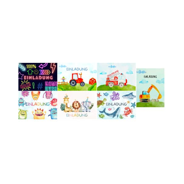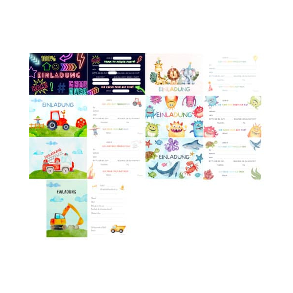 Überraschen Sie die kleinen Gäste mit einzigartigen und kreativen Einladungen, die sie begeistern werden. Diese Einladungskarten sind nicht nur ein simpler Weg, um zu einer Feier einzuladen, sondern auch eine wunderbare Möglichkeit, Kinderaugen zum Leuchten zu bringen. Mit den lebhaften Designs und der hochwertigen Verarbeitung von Komma sind Sie bestens ausgestattet!