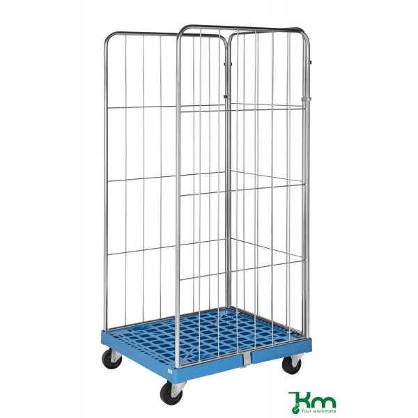 Rollcontainer KM72811803P, Rollcontainer mit Kunststoffboden, 810x725x1800mm (BxLxH), bis 400kg belastbar, 2 Bockrollen, 2 Lenkr