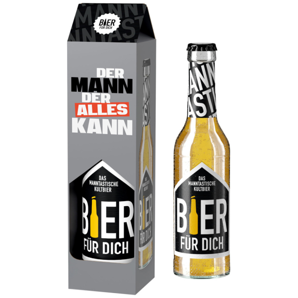 Endlich gibt es ein vernünftiges Geschenk für echte Männer... unser Lieblingsbier ist so richtig erfrischend. Jede Flasche (0,33L) wird geschützt von einer edlen Geschenkverpackung. Da freut sich jeder Mann! Enthält Alkohol!