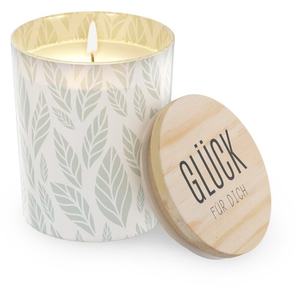 Diese Kerze bietet nicht nur eine lange Brenndauer von etwa 30 Stunden, sondern ist auch aus hochwertigem Sojawachs gefertigt, was sie zu einer umweltfreundlichen Wahl macht. Der Holzdeckel verleiht der Kerze einen besonderen Charme, während das schöne Blattmotiv das Gesamtbild abrundet.