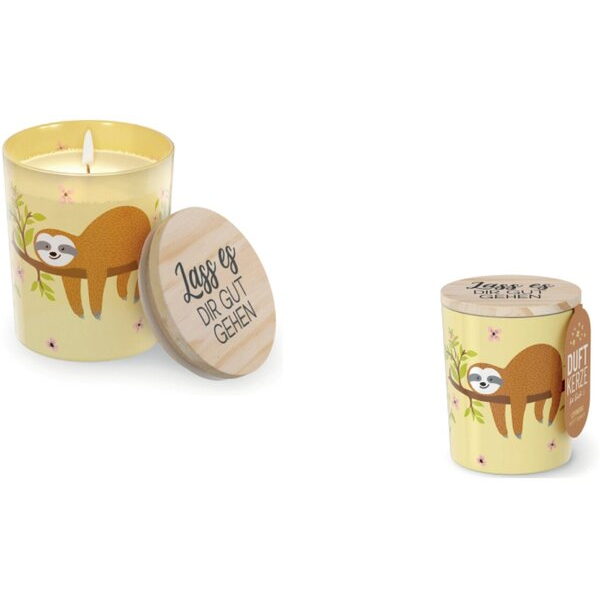 Entdecken Sie die wunderbare Kerzen 6516771 in den warmen Farben gelb und braun, die nicht nur für eine angenehme Beleuchtung sorgen, sondern auch einen bezaubernden Lemongrasduft verströmen. Diese Duftkerze im Glas ist mit einem stilvollen Holzdeckel versehen und begeistert durch ihr niedliches Faultier-Motiv.