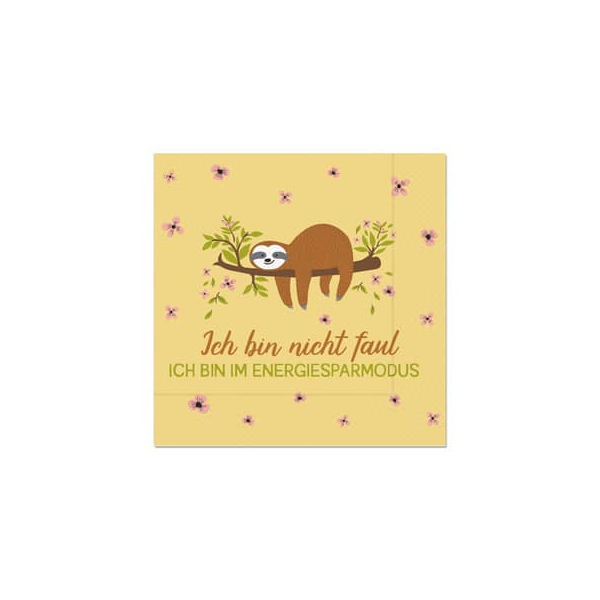 Bringen Sie mit den Motivservietten von FÜR DICH ein Stück Natur auf den Tisch und lassen Sie sich von der Niedlichkeit des Faultiers begeistern. Diese Servietten sind nicht nur praktisch, sondern auch ein Blickfang für jede Tischdekoration.
