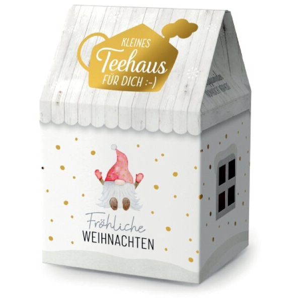 Entdecken Sie den einzigartigen Tee 4261981 von LA VIDA, der nicht nur als köstliches Getränk, sondern auch als charmante Geschenkverpackung in Form eines kleinen Teehauses begeistert. Dieser Tee ist die perfekte Wahl für festliche Anlässe und wird in einem stilvollen Motiv mit dem Thema "Fröhliche Weihnachten" präsentiert.