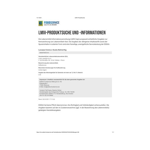 zum DatenblattLavazza Lavazza in Kaffee anzeigen | |