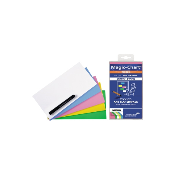 Die Moderationskarten eckig "Magic-Chart Notes 7-159499" von Legamaster sind ein attraktives, farbenfrohes Hilfsmittel für jede Diskussionsveranstaltung. Diese Karten schaffen im Handumdrehen Platz für Notizen und halten einfach und sicher, da ihre gesamte Oberfläche elektrostatisch haftfähig ist, ohne Kleber. Dank der patentierten Technik (statische Aufladung, EP1 326 918 B1) sind sie wiederverwendbar und können mit jedem trocken abwischbaren Marker verwendet werden.