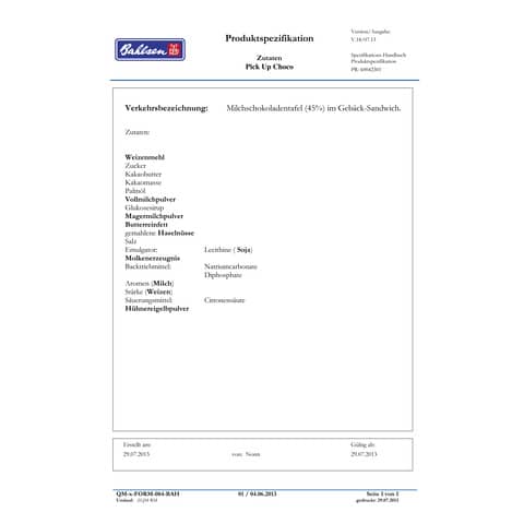 Der PickUp Choco enthält folgende Nährwertangaben: