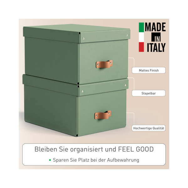 Die Box wird flach verpackt in einer plastikfreien Verpackung geliefert und ist zu 100 % recycelbar. Mit dem Griff aus recyceltem Leder erhalten Sie zudem ein umweltbewusstes Produkt, das durch seine Robustheit besticht.