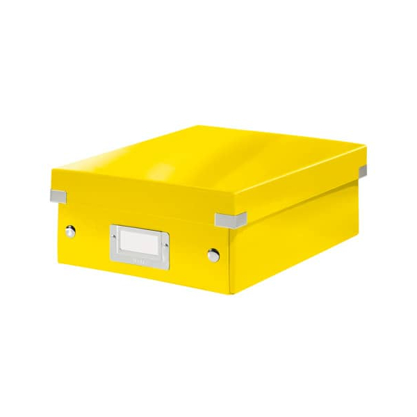 Leitz Click & Store WOW 6057-00-16 Aufbewahrungsbox in gelb • Material: Karton • Volumen: 4,5 Liter • Verschlussart: mit Deckel • Innenmaß: 250 x 200 x 90mm • Außenmaß: 282 x 220 x 100mm • max. Tragfähigkeit: bis 4kg • stapelbar • z. B. für: A5 • Eignung: Haushalt, Büro