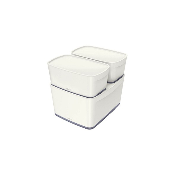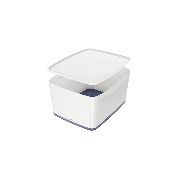 Leitz Aufbewahrungsbox MyBox 5216-10-01, 18 Liter, mit Deckel, außen 385x318x198mm, Kunststoff weiß/grau