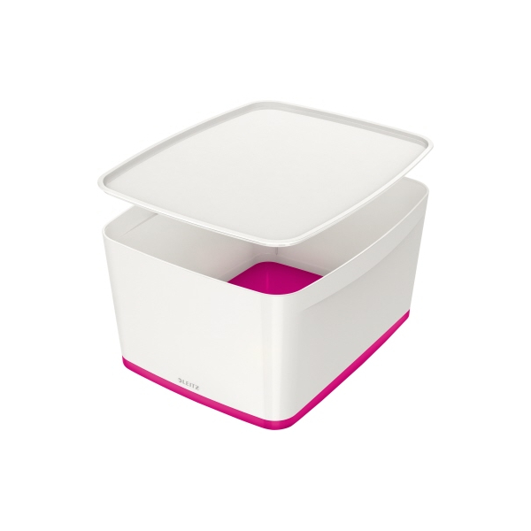 Leitz Aufbewahrungsbox MyBox 5216-10-23, 18 Liter, mit Deckel, außen 385x318x198mm, Kunststoff weiß/pink