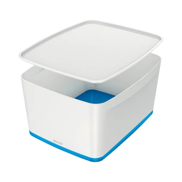 Leitz Aufbewahrungsbox MyBox 5216-10-36, 18 Liter, mit Deckel, außen 385x318x198mm, Kunststoff weiß/blau