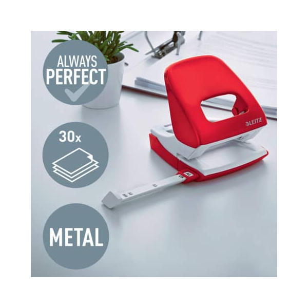 Leitz Bürolocher New NeXXT WOW 5008-10-26, rot, bis 3mm 30 Blatt, mit Anschlagschiene