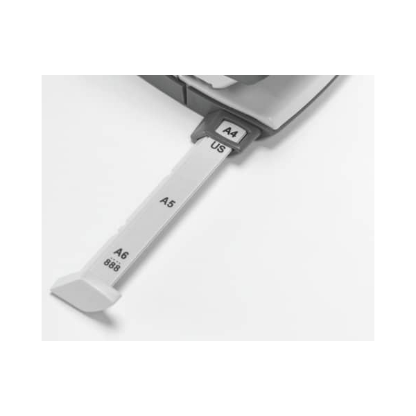 Anschlagschiene mit farbiger Bedruckung und Fenster. Mit transprarentem, rutschfestem Kunststoffboden (Abfallkasten), ergonomisch geformter Griffbereich, mit ultra-scharfen Lochstempeln, auch für 4-fach Lochung geeignet