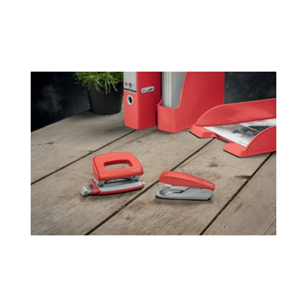 Leitz NeXXt Recycle Mini 5010-00-25 Bürolocher in rotmit Anschlagschiene.