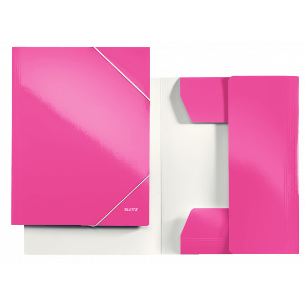 Leitz WOW 3982-00-23 Eckspanner • Format: DIN A4 • Farbe: pink metallic • Verschlussart: 2 Gummizüge (Eckspanngummis) • 3 Einschlagklappen • Material: PP-kaschiert 300 g/m² • Zertifikat: FSC • 1 x Loseblatt-Ablage • Fassungsvermögen ca.: 250 Blatt • Vorderdeckel: voll
