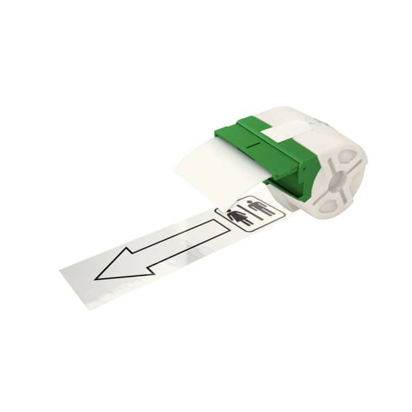 • Besonderheiten: 10 m lang, Endlos-Etikettenkassette, permanent klebend, intelligente Kassette mit integriertem Chip für Druckerkommunikation: zeigt den Etikettentyp und die Restanzahl an Etiketten an, strapazierfähig und wasserbeständig