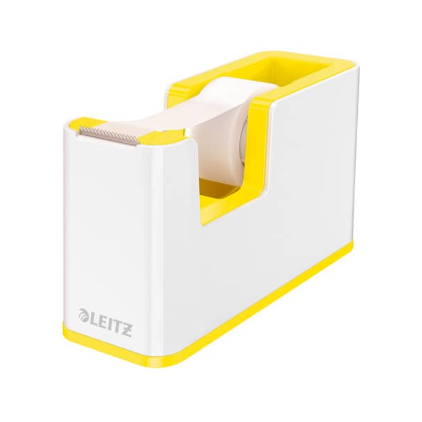 Leitz Klebebandabroller WOW Duo Colour 5364-10-16, für Klebebänder bis 19mm x 33m, gelb/weiß