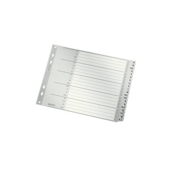 Leitz Kunststoffregister 1262 1262-00-00, A bis Z, A4+ halbe Höhe, 120µm, graue Taben, 20-teilig