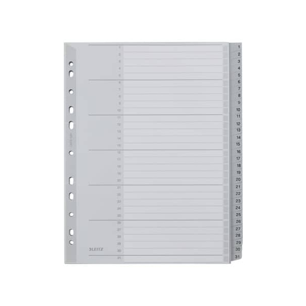 Leitz Kunststoffregister 1281 1281-00-00, 1 bis 31, A4+, graue Taben, 31-teilig