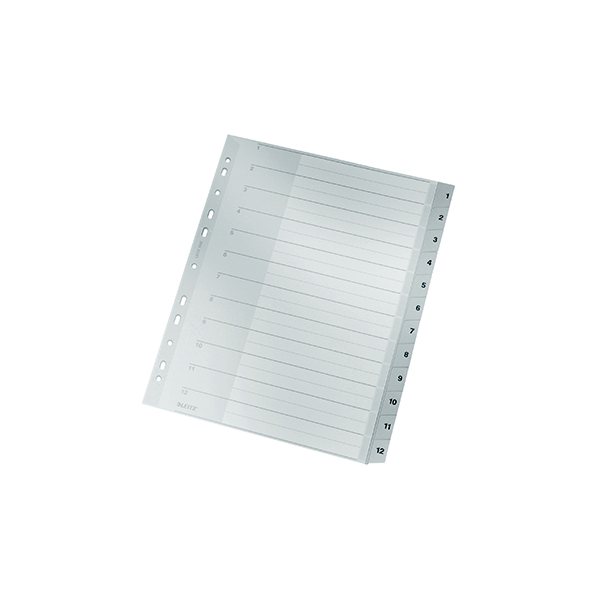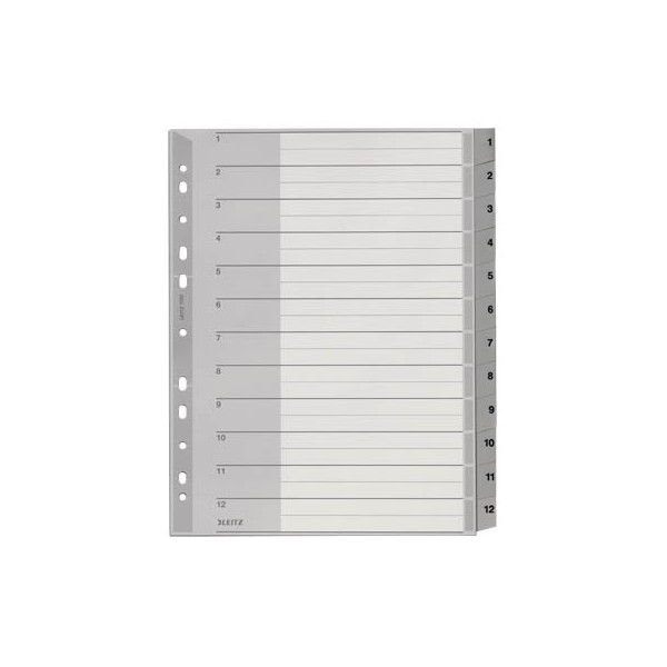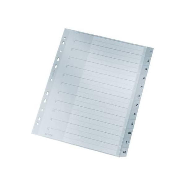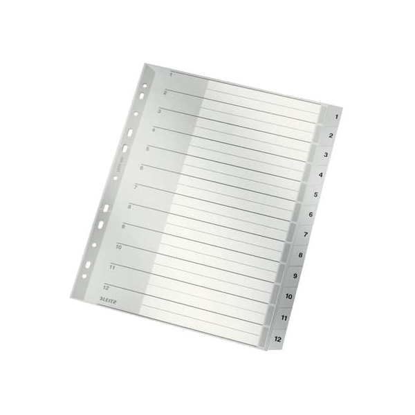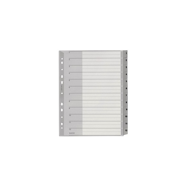Leitz Kunststoffregister 1282 1282-00-00, 1 bis 12, A4+, graue Taben, 12-teilig