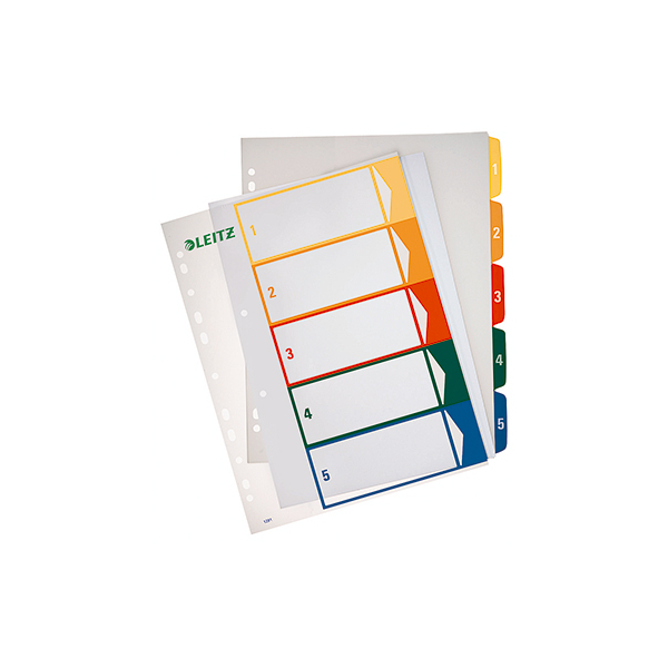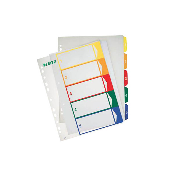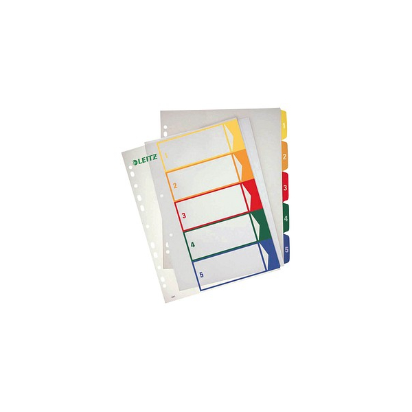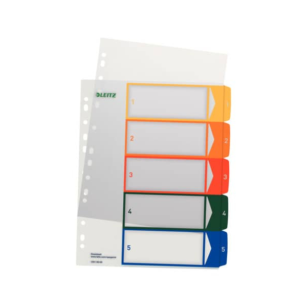 Leitz Kunststoffregister 1291 12910000, 1 bis 5, A4+, farbige Taben, 5-teilig