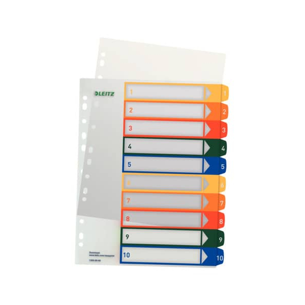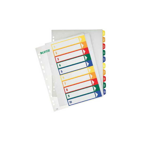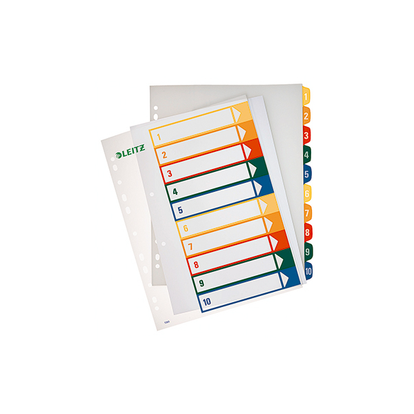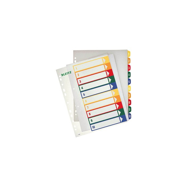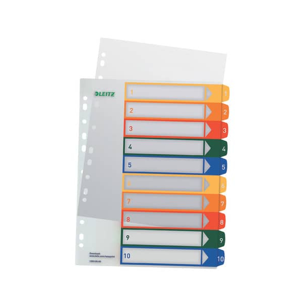 Leitz Kunststoffregister 1293 1293-00-00, 1 bis 10, A4+, farbige Taben, 10-teilig