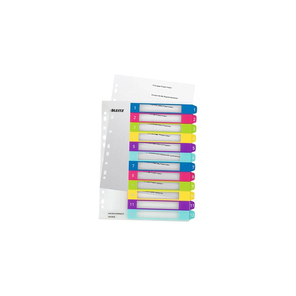 Leitz Kunststoffregister WOW 1244-00-00, 1 bis 12, A4+, 300µm, farbige Taben, 12-teilig
